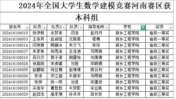近日,2024年(第十届)全国大学生数学建模大赛河南赛区比赛落下帷幕,河南省赛区共有40余所院校、1713支队伍报名参加。其中我校参赛队伍发扬了自身刻苦钻研的优异品质,经过激烈角逐,荣获省赛一等奖两项、二等奖一项、三等奖八项,这是我校在全国大学生数学建模比赛中取得的新突破。