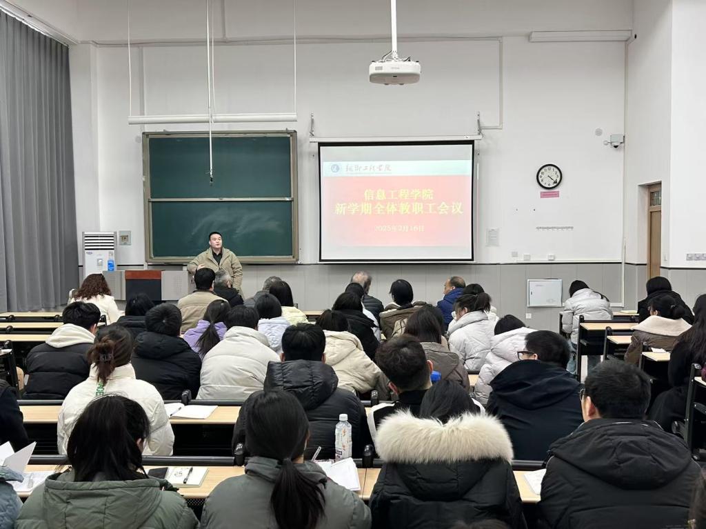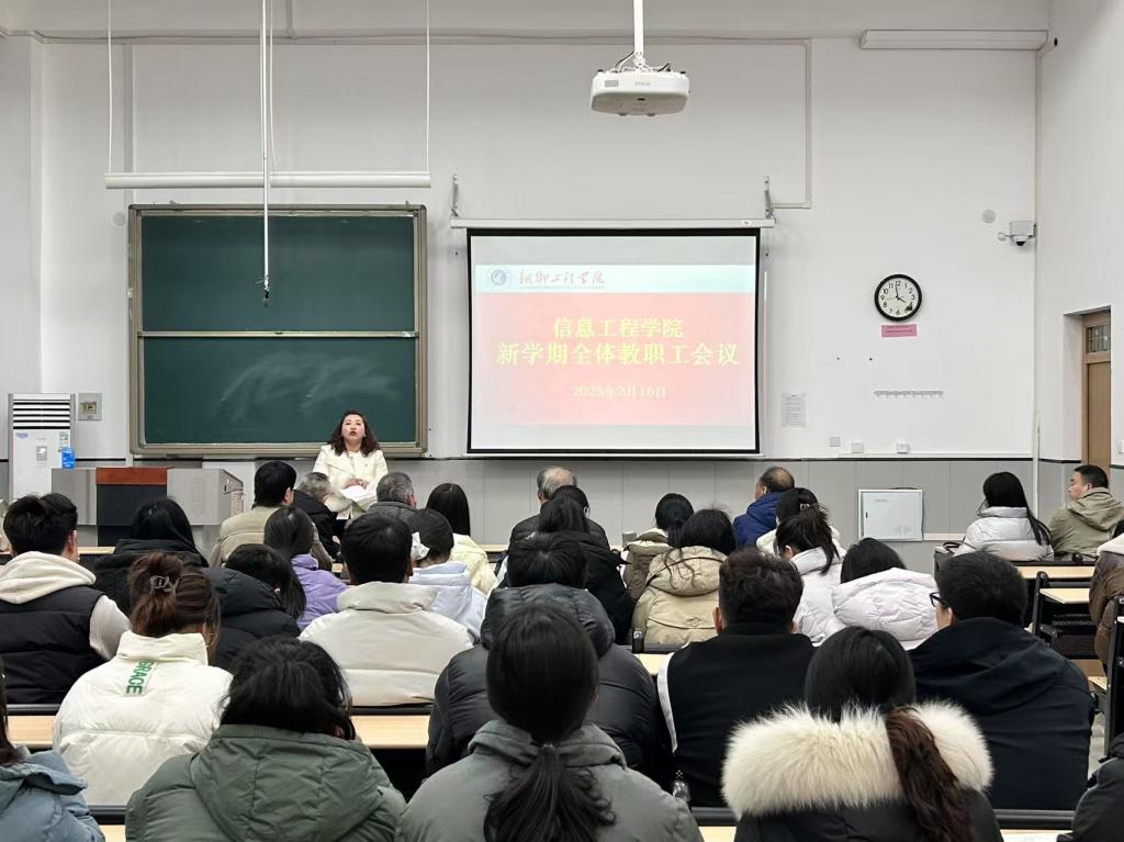 2月16日下午16时,信息工程学院新学期全体教职工会议在教学楼1-106顺利召开。会议由学院教学副院长焦红艳主持,院领导班子及全体教职工参加了会议。会议围绕新学期学院的教学、科研、学生工作及管理服务等方面展开,为新学期的工作指明了方向。