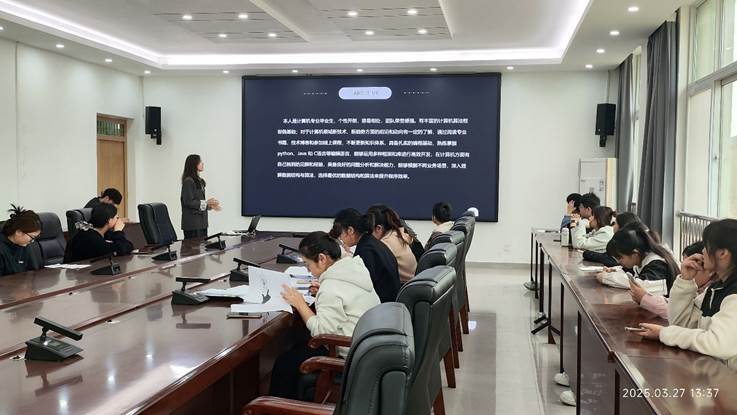 3月27日,简历大赛决赛在综合实验楼201如期举行。决赛现场,选手们通过“3分钟简历展示+2分钟答辩”的激烈角逐,全方位展现职业素养与个人风采。在简历展示环节,选手结合精心设计的简历,从教育背景、实践经历、专业技能等方面展开限时陈述。有的以数据量化成果,突出实践能力;有的通过项目案例展现创新思维;还有选手巧妙结合行业趋势,精准匹配岗位需求。来自计科专业的胡森同学凭借“动态可视化简历”和专业的答辩赢得掌声,获得评委“目标明确、学习力强”的高度评价。