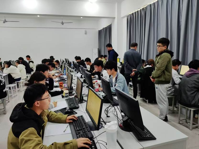 比赛当日,多个标准化考场秩序井然。参赛选手在4个小时的激烈角逐中完成算法设计、程序调试等挑战。信息工程学院党委副书记李超携教师代表巡视考场并强调:“承办国家级赛事是提升应用型人才培养质量的重要抓手,未来将持续深化‘课赛融通’机制,推动教育教学改革。”