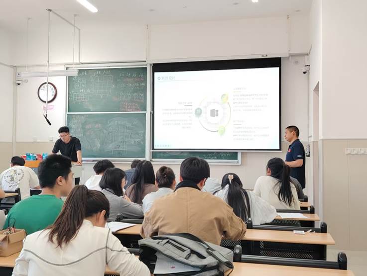 答辩现场,学生以PPT汇报、实物展示及视频的形式,从选题背景、技术路线、创新点及实践价值等方面进行汇报设计成果。评委围绕研究内容、设计逻辑、技术细节、实际应用等多个维度展开提问,并针对学生的设计与论文中存在的问题和不足进行细致点评,从产业需求角度为学生提供职业发展指导。答辩结束后,学院召开总结会,梳理共性问题,为后续教学改革提供参考。