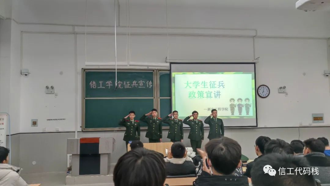 为丰富征兵宣传形式,增强学生兵役观念,宣传征兵政策。信息工程学院于2021年12月13日在教学楼1-107教室召开了征兵宣传会议。