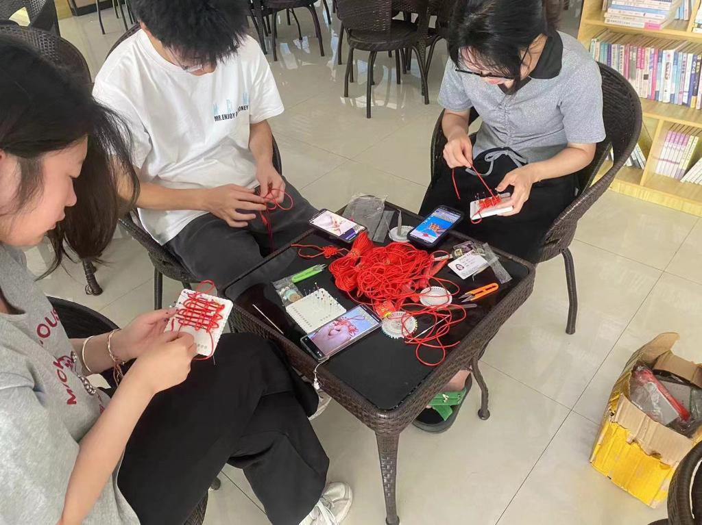 活动伊始,主讲人首先向同学们讲解中国结的历史渊源和文化意义,让大家认识到制作中国结不仅是一项传统手工艺活动,更是一种文化传承。接下来,由工作人员示范基本的编结技巧,同学们聚精会神地聆听和观看着。随后在工作人员的指导下,同学们开始动手尝试,有的同学动作迅速,很快就掌握了窍门;有的同学则略显生涩,但在同伴的耐心帮助下,也逐渐找到了感觉。
