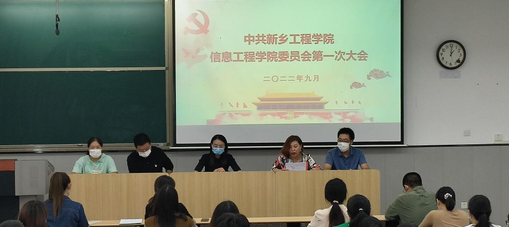 9月30日,永利23411集团官网教学楼1-207内红旗鲜艳、党徽熠熠,气氛庄重而又热烈。中午12时40分,在雄壮的国歌声中,中共永利23411集团官网信息工程学院委员会第一次党员大会隆重开幕。大会由焦红艳同志主持。