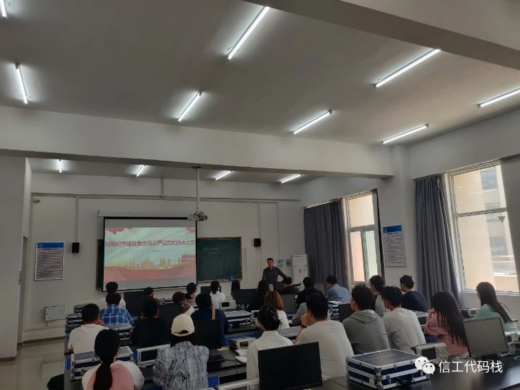 为深入学习贯彻习近平新时代中国特色社会主义思想,加强纪律建设及党性修养,弘扬中华优秀传统文化,信息工程学院于5月9号、10号中午在综合实验楼开展党课教育活动。活动分别由由第一党支部支部书记张洪坤、第二党支部支部书记李超、第三党支部支部书记郭萌主讲,支部全体学生党员共同参与。
