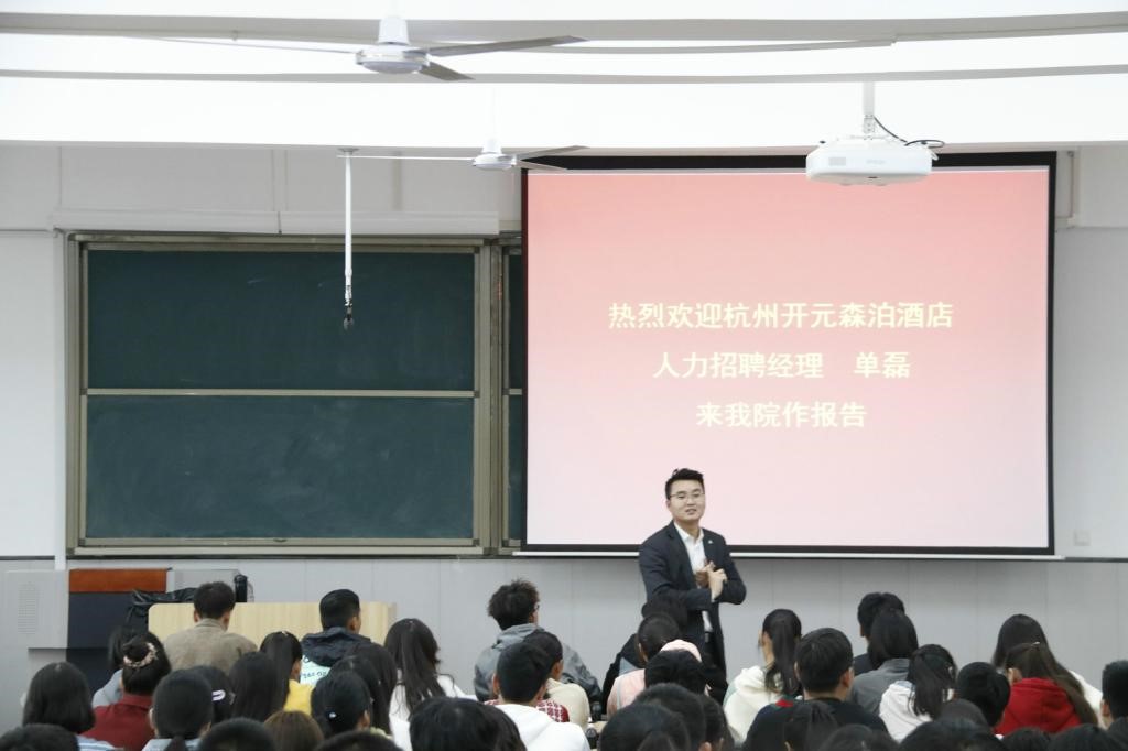 为加强学生对专业的了解,帮助学生做好职业生涯规划,10月24日,食工系在B2教学楼209教室举办“旅游新业态下的职业发展观”主题讲座,邀请我院2014级优秀校友单磊作报告。食工系教师贾路路、张素杰以及2019级、2020级酒店管理专业、旅游管理专业的全体学生聆听报告。