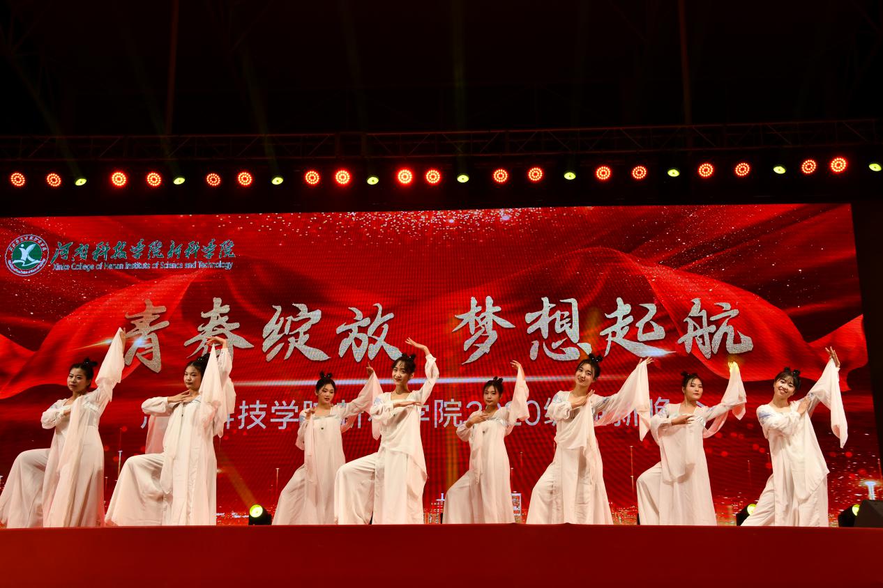 晚上7时,随着主持人宣布晚会开始,新科的夜晚瞬间被学子的热情点燃。本次迎新晚会节目形式多样,内容丰富,艺术性与思想性并重。在历时100分钟的演出中,包含了独唱、二胡、相声、武术、古典舞、现代舞、朗诵等多种表演形式。其中,“旗”开得胜,“仪”见倾心和“Sexy baby”的表演者通过气场十足的走秀和激情热烈的舞蹈把晚会氛围推向了高潮,LED大屏幕营造的声、光、影的艺术氛围,精彩纷呈的节目表演,为现场师生带来了一出别样的视听盛宴。晚会在大合唱《歌曲联唱》中圆满落下帷幕。