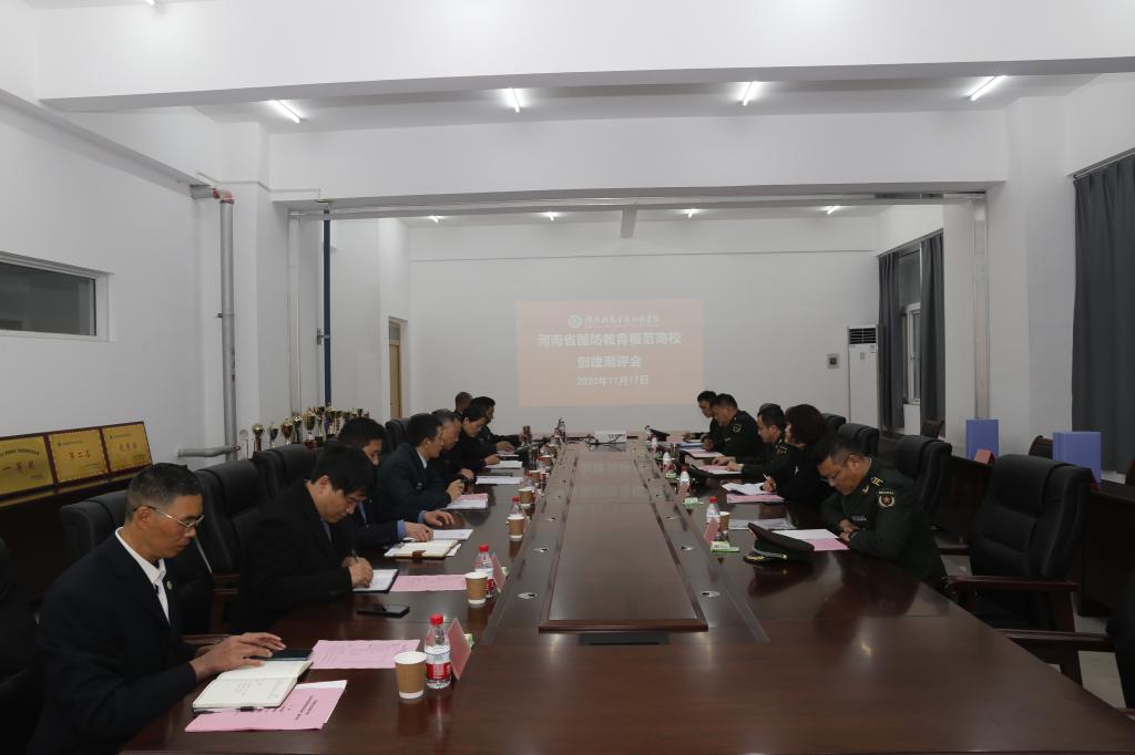 党委学工部部长、人民武装部部长程海军,从国防教育的组织领导、国防教育开展情况、兵员征集以及大学生军训等方面对我院在积极创建“河南省国防教育模范高校”的基本情况进行了汇报。