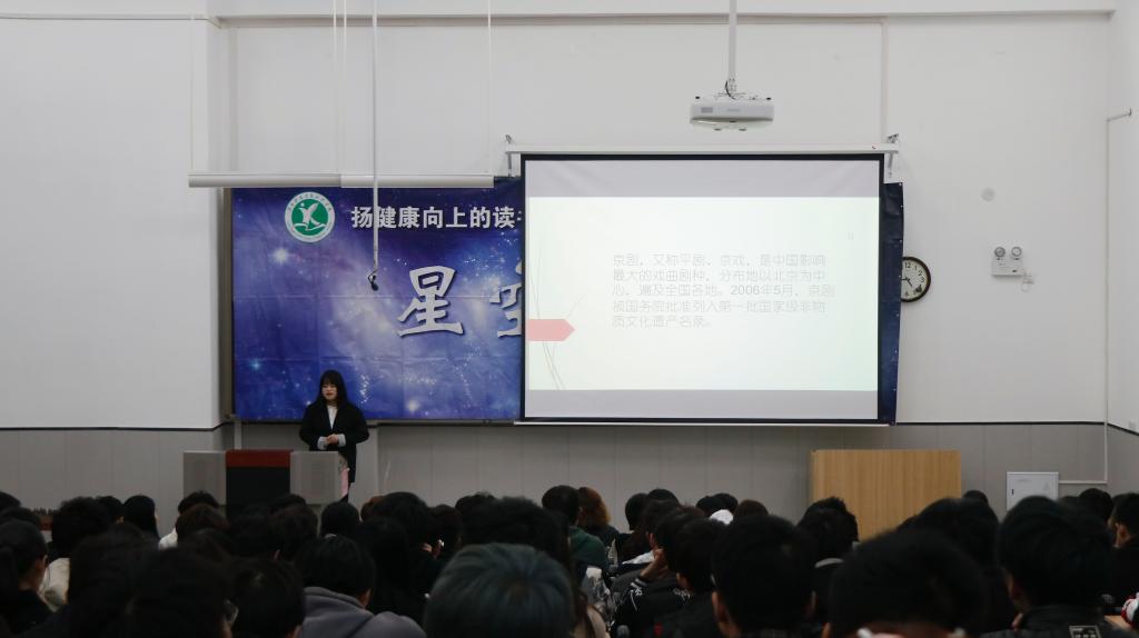 本期“星空讲堂”分为“我听”“我议”“我看”“我讲”“我唱”等环节。在“我听”“我议”环节,信工系学生代表为大家讲解了中国传统文化——京剧,详细解读了“京剧”的由来和发展史。大家激烈讨论并分享了自己的看法。在“我看”环节,大家一起观看了《经典咏流传》《中国好诗词》相关节选视频以及学生代表表演的《古筝二胡合奏》,深刻感受到中国文化的博大精深。在“我讲”环节,由主持人现场提问,在场学生讲述了内心感受。在“我唱”环节,信工系合唱团为大家合唱了《我和我的祖国》,再次点燃了同学们的热情。