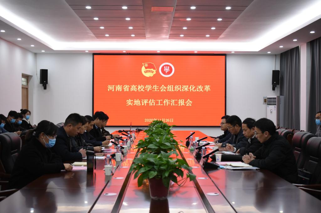 11月26日下午,河南高校学生会组织深化改革评估组时斌一行4人莅临我院开展学生会组织深化改革评估验收工作。党委副书记张慧辉,党政办、学工部、团委相关负责同志,系团总支书记,院学生会、系学生会主席团成员在综合楼201会议室参加评估工作会议。会议由党委学工部部长程海军主持。