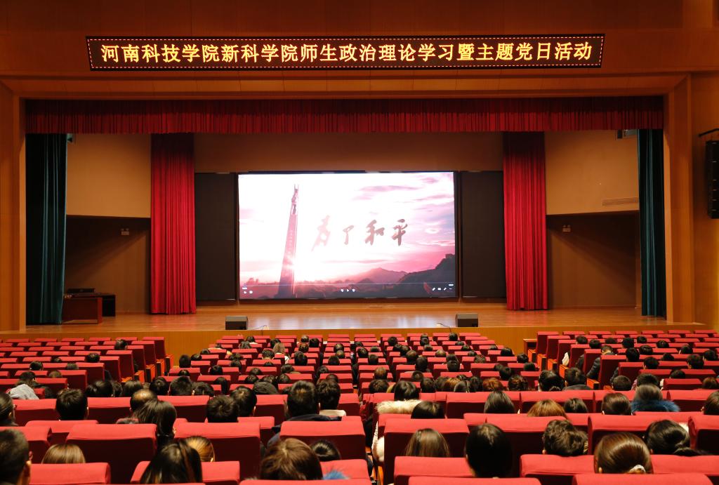为深入贯彻落实习近平总书记在纪念中国人民志愿军抗美援朝出国作战70周年大会上的重要讲话精神,深入开展“四史”学习教育,丰富师生政治理论学习形式,根据河南省教育厅办公室《关于组织全省教师观看大型电视纪录片<为了和平>的通知》精神,12月3日下午,我院组织师生200余人在B3教学楼报告厅集中观看了爱国教育纪录片《为了和平》第一集——正义担当。