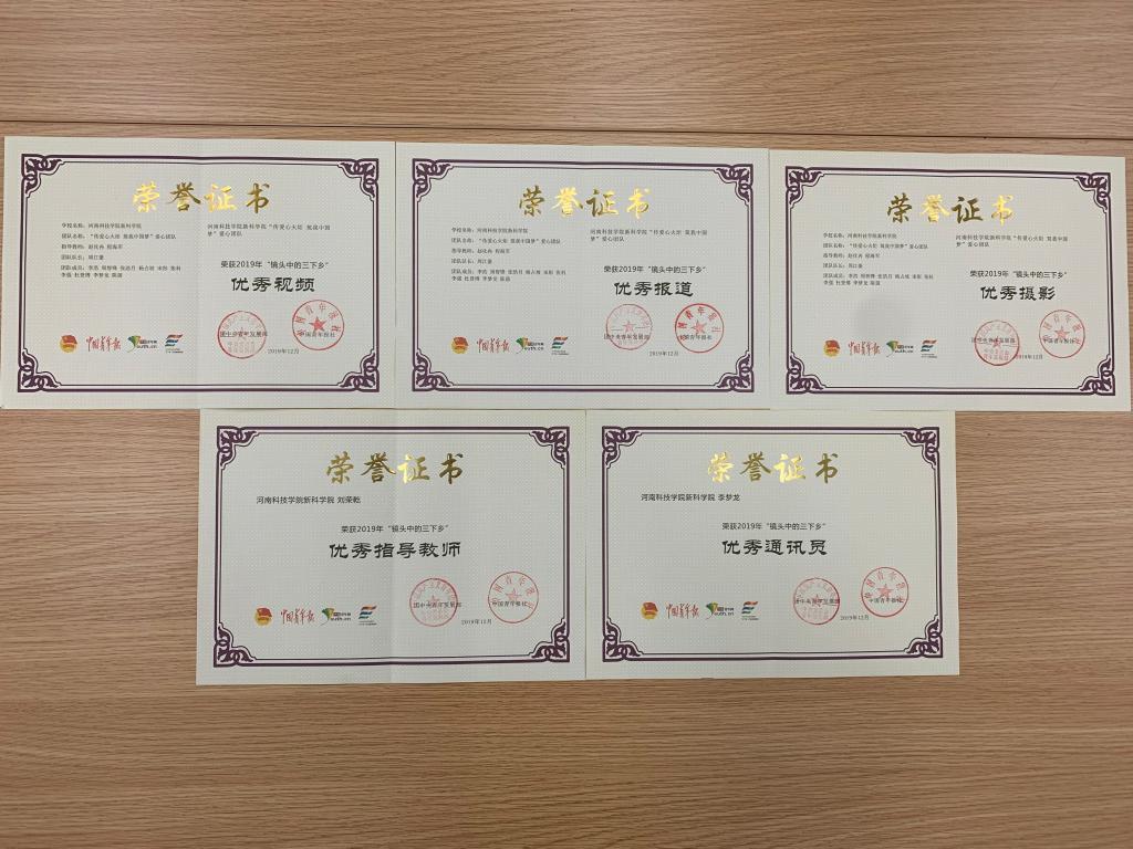 另外,在由团中央青年发展部、中国青年报、中国青年网共同举办的2019年暑期“三下乡”社会实践“镜头中的三下乡”成果遴选活动中,我院“传爱心火炬,筑我中国梦”实践团队获得优秀报道奖、优秀摄影奖、优秀视频奖等多项荣誉。其中,刘荣乾老师荣获“优秀指导教师”称号,管理系李梦龙荣获“优秀通讯员”称号。