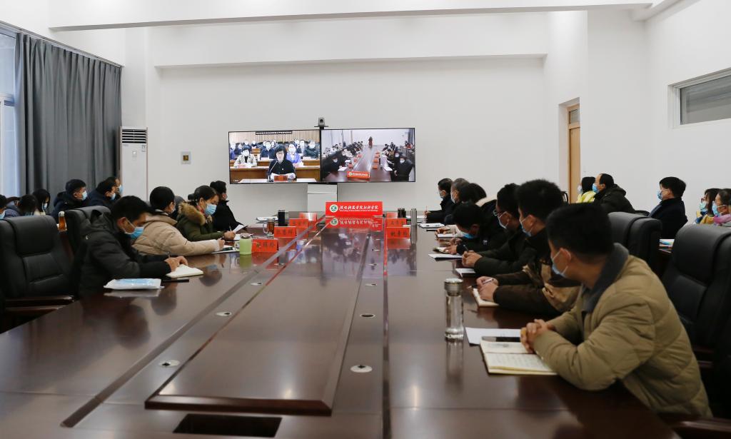 1月12日上午,河南省教育厅召开全省教育系统疫情防控工作电视电话会议,进一步推动全省教育系统做好今冬明春、寒假前后新冠肺炎疫情防控工作。我院组织全体在校院领导、疫情防控工作领导小组成员、各单位负责人在综合楼208会议室集中收听收看并认真学习。