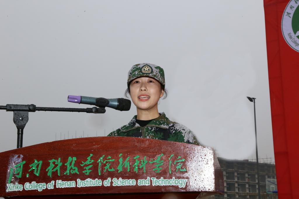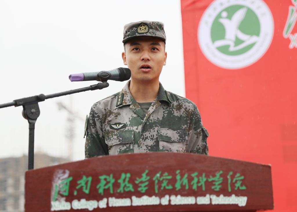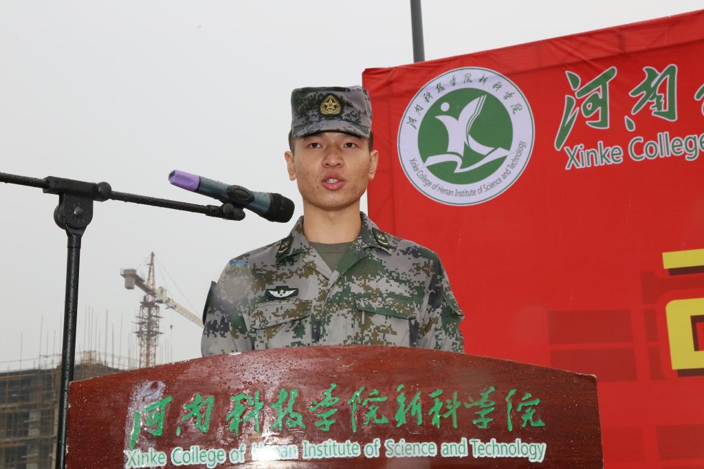 帮训教官代表杨福鑫表示将在军训期间严明纪律,严格要求,科学组织,言传身教,以过硬的军事素质和良好的精神风貌完成本次军训任务。