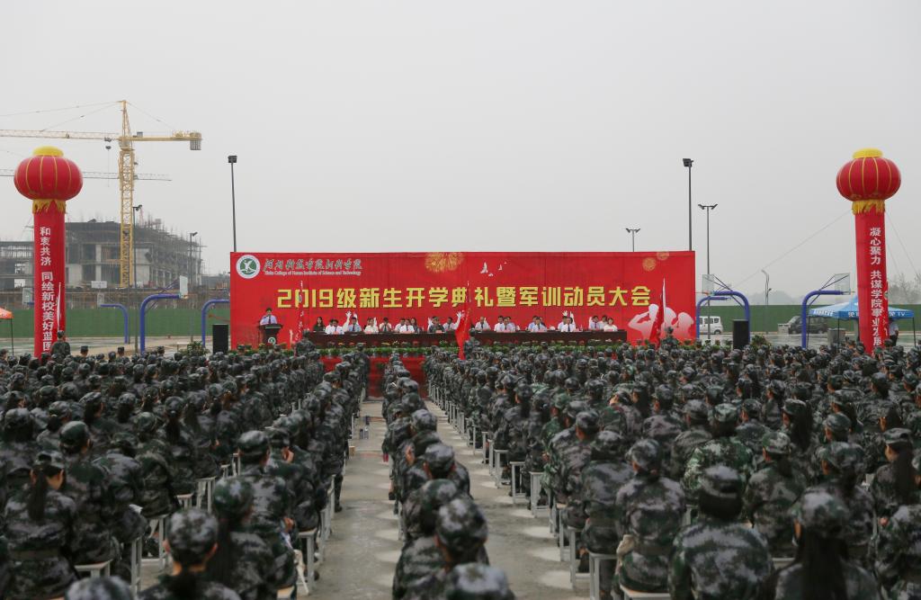 乘风远航启新程,春华秋实绘佳卷。9月10日,2019级新生开学典礼暨军训动员大会在新校区操场举行。院领导刘鸣韬、张忠迪、张传来、张宝剑、王秀金、张慧辉、姚素梅,中国人民解放军32150部队、军训团团长袁文浩出席大会,相关职能部门和各系负责人、2019级辅导员、教师代表、全体帮训教官及2000余名新生参加大会。大会由党政办公室主任韩国立主持。