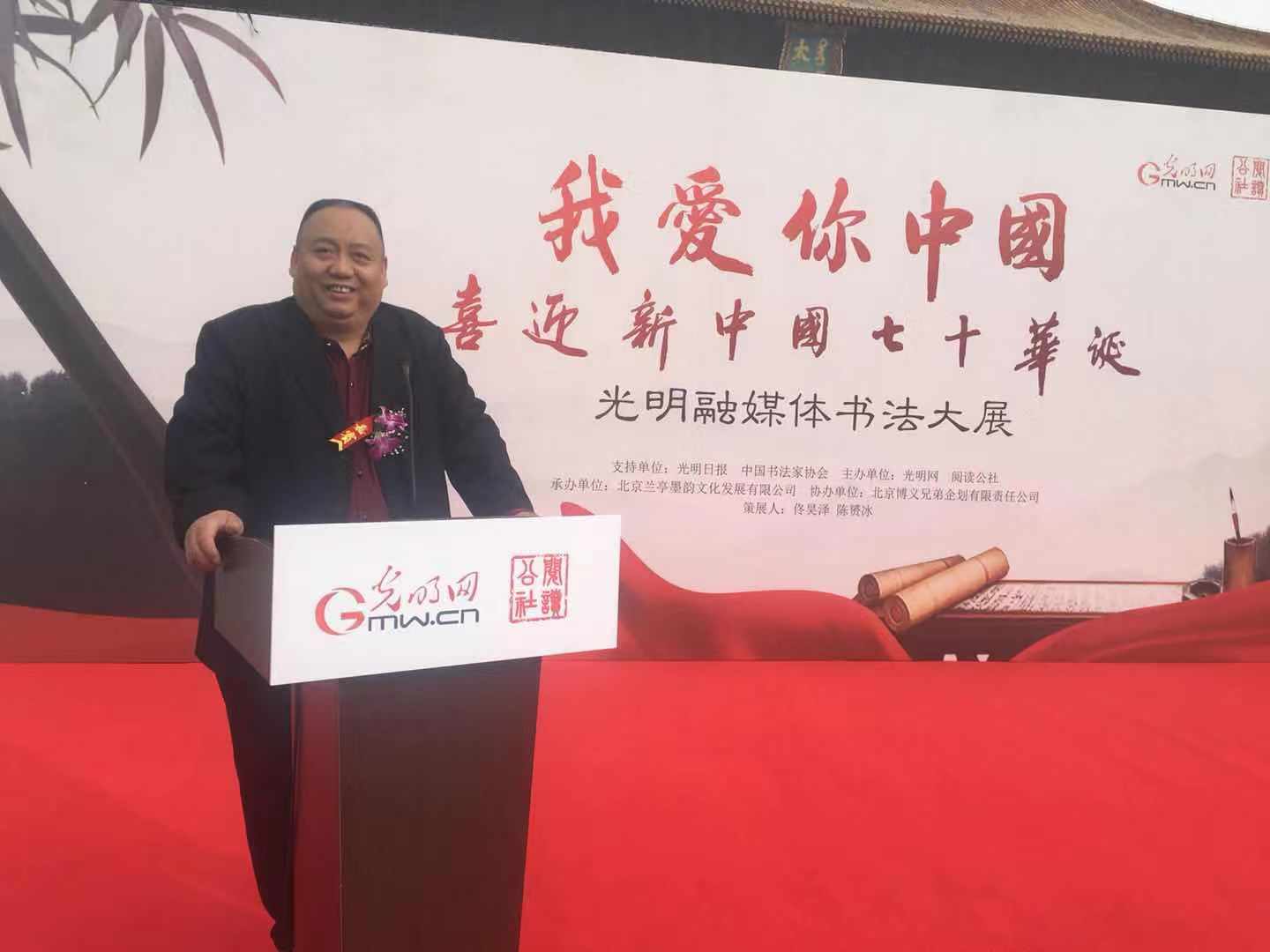 10月16日,首届“我爱你中国”光明融媒体书法大展优秀作品专场展览开幕式在北京市劳动人民文化宫太庙举行。我院艺术系主任邢孟志副教授受邀参加展览开幕式。