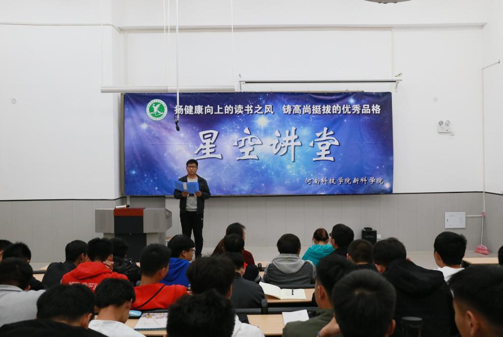 本期“星空讲堂”分为“我看”、“我听”、“我讲”、“我议”四个环节。在“我看”环节,大家一起观看了爱国励志宣传片,片中记录了新中国成立70年来,我国从积贫积弱到繁荣富强的伟大进程;在“我听”环节,主讲人号召大家一定不忘初心、牢记使命,为中华民族伟大复兴努力奋斗;在“我讲”、“我议”环节,同学们积极发言,诉说了视频中新中国70年的巨变给自己带来的感受。