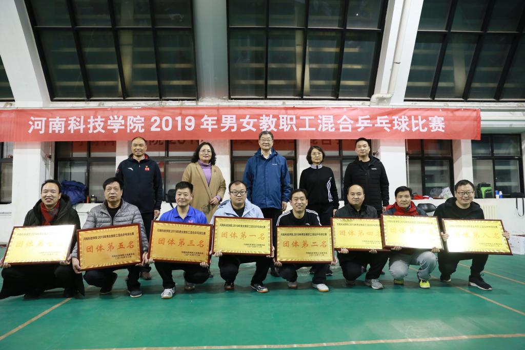 12月6日,河南科技学院2019年男女教职工混合乒乓球比赛圆满闭幕。经过5天的激烈角逐,我院教工代表队一路杀进决赛,勇夺比赛冠军。