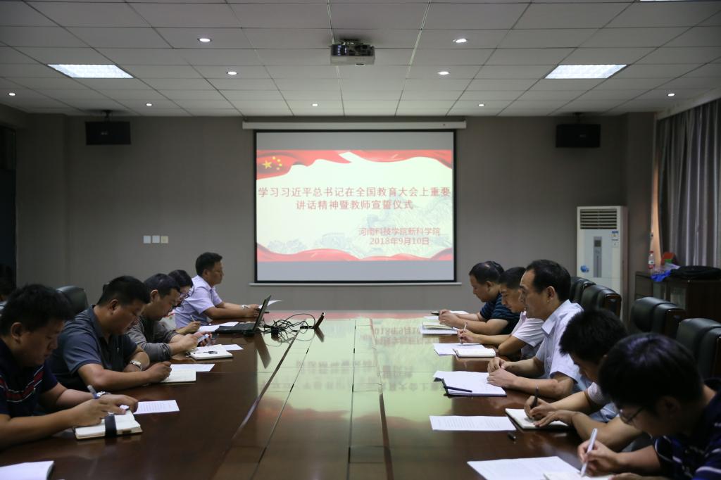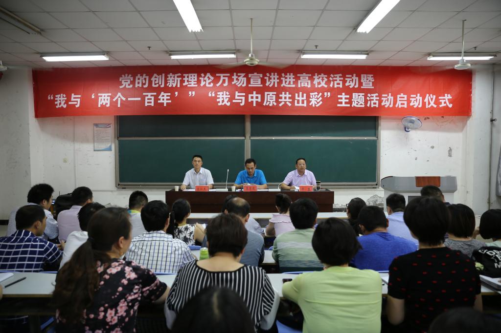 2018年是贯彻党的十九大精神的开局之年,院党委下发了《河南科技学院新科学院学习贯彻党的十九大精神实施方案》《河南科技学院新科学院“党的创新理论万场宣讲进高校”活动工作方案》《河南科技学院新科学院关于组织学习宣传贯彻全国教育大会精神的通知》,分别成立工作领导小组。6月7日,召开了“党的创新理论万场宣讲进高校活动”暨“我与‘两个一百年’”“我与中原共出彩”主题活动启动仪式,同时组建宣讲团,全年开展党的理论宣讲70余场,宣讲对象达7850人。通过学习,使整个师生队伍政治素养全面提升,务实勤奋的思想基础更加巩固。