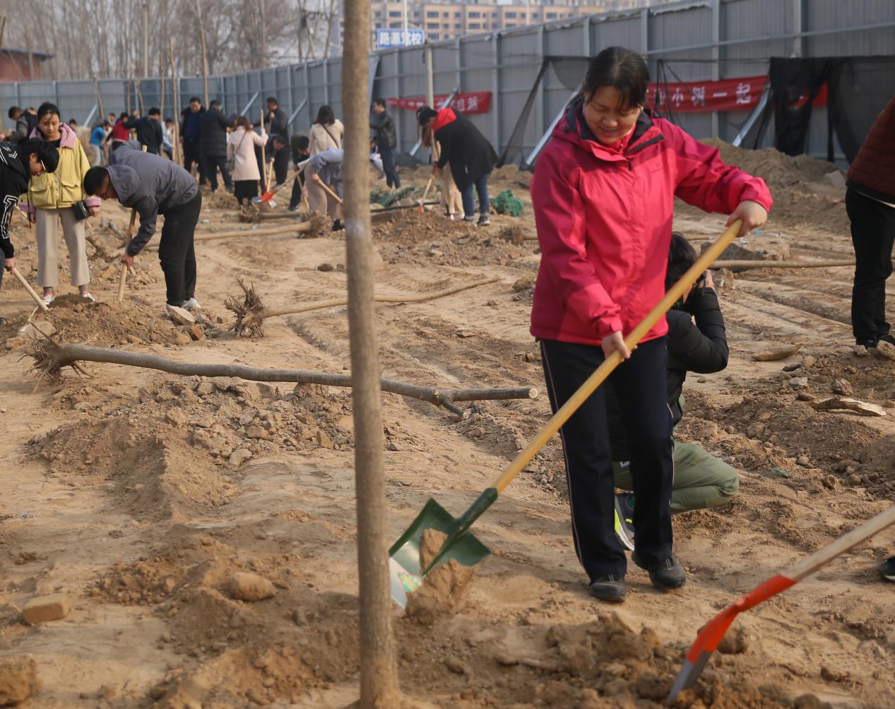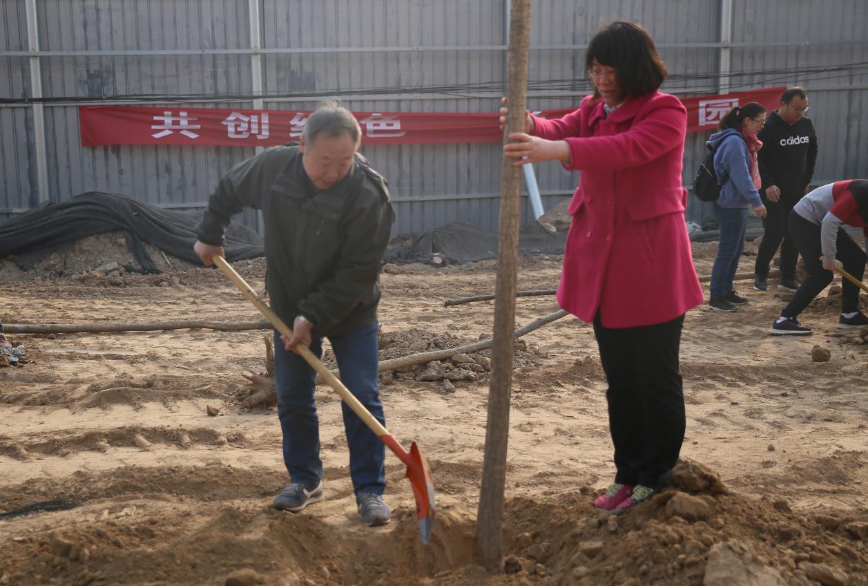 活动现场,在听取张传来副院长关于植树的要点、步骤和注意事项的讲解后,大家或两人一组、或三五搭档,分工协作,扶苗、培土、踩实、围堰,每个环节都一丝不苟,整个过程井井有条,现场呈现出一派热火朝天的劳动景象。经过一个多小时的劳动,在全体人员的共同努力下,共种植法桐、国槐300余株。一棵棵新植的树苗迎风挺立,为新校区增加了一抹新绿、一份活力,成为一道靓丽的风景线。