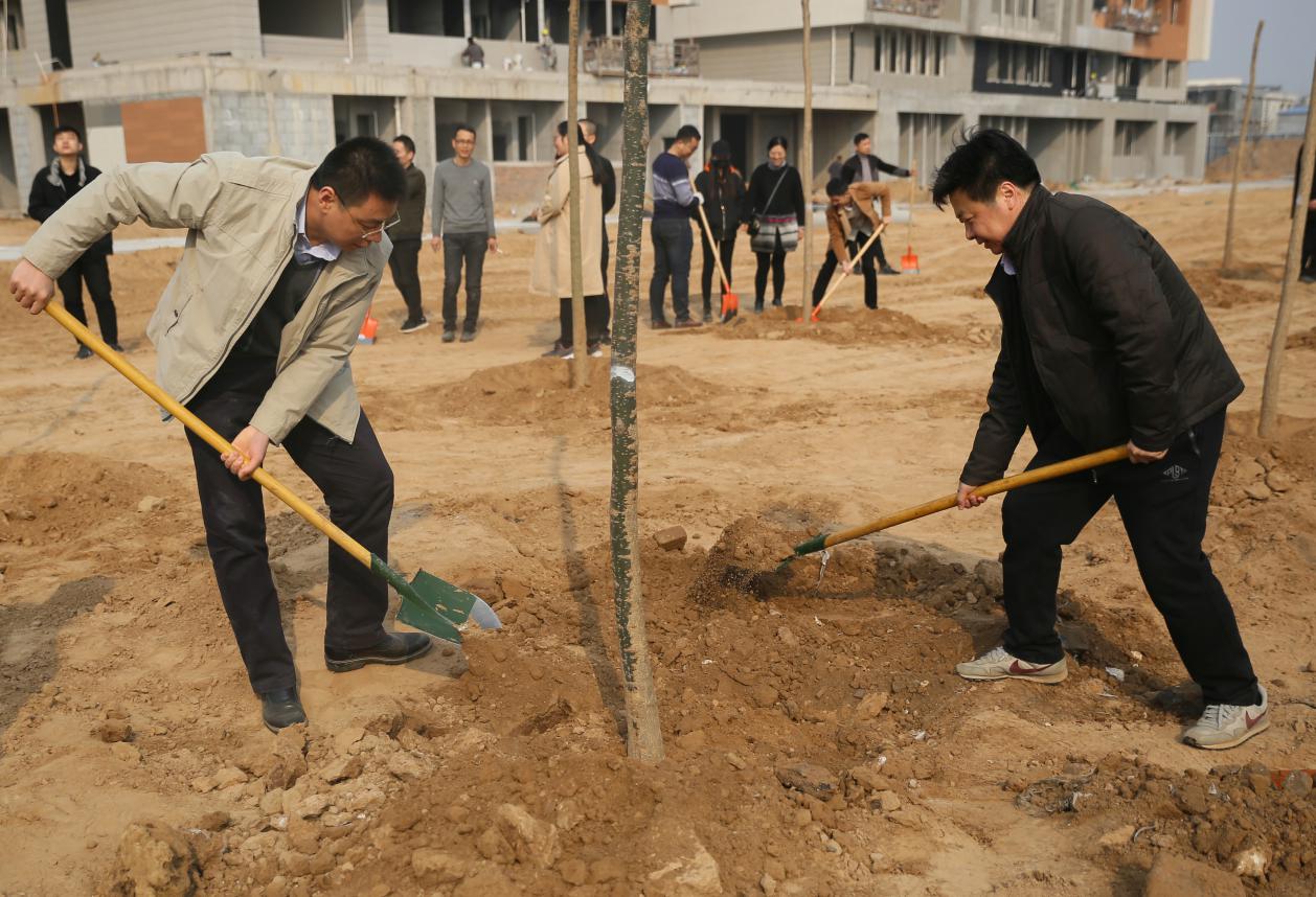 3月9日上午,在第41个植树节到来之际,我院在新校区组织开展植树活动。新科学院董事长赵建永,院长刘鸣韬,副院长张传来,党委副书记王秀金、张慧辉,副院长姚素梅携师生代表50余人与新永基集团及新投实业全体职工共同参加了此次活动。