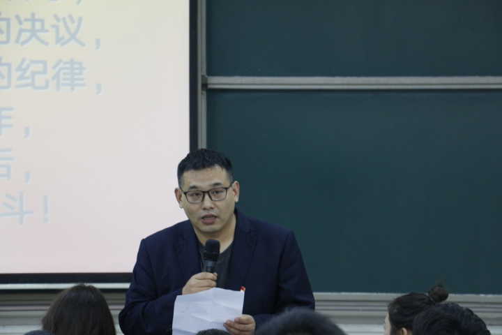 最后,院团委组织科科长张阳向全体新团员表示祝贺。他讲到,团员青年要认真学习宣传贯彻习近平总书记在纪念五四运动100周年大会上重要讲话精神,时刻保持团员先进性,以自己的实际行动去影响身边的同学,让更多的优秀青年加入到我们的组织。