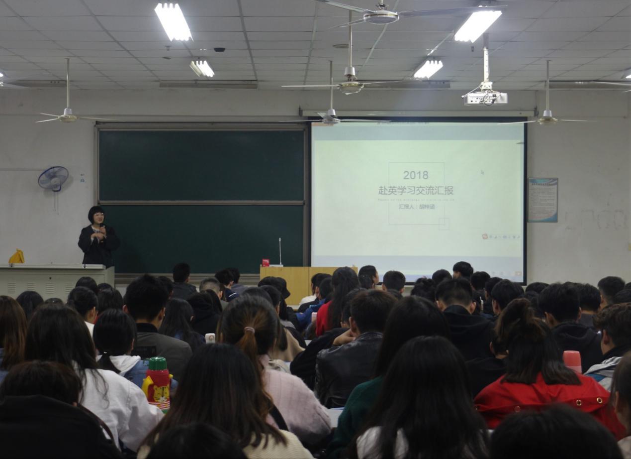 为深入学习贯彻落实党的十九大精神,习近平新时代中国特色社会主义思想,切实提高我院学生骨干的思想政治素质,增强创新能力,10月21日下午在12号楼合三教室,我院外语系优秀学生干部胡梓涵作赴英学习交流汇报会。全院180余名学生骨干参加了此次汇报会。