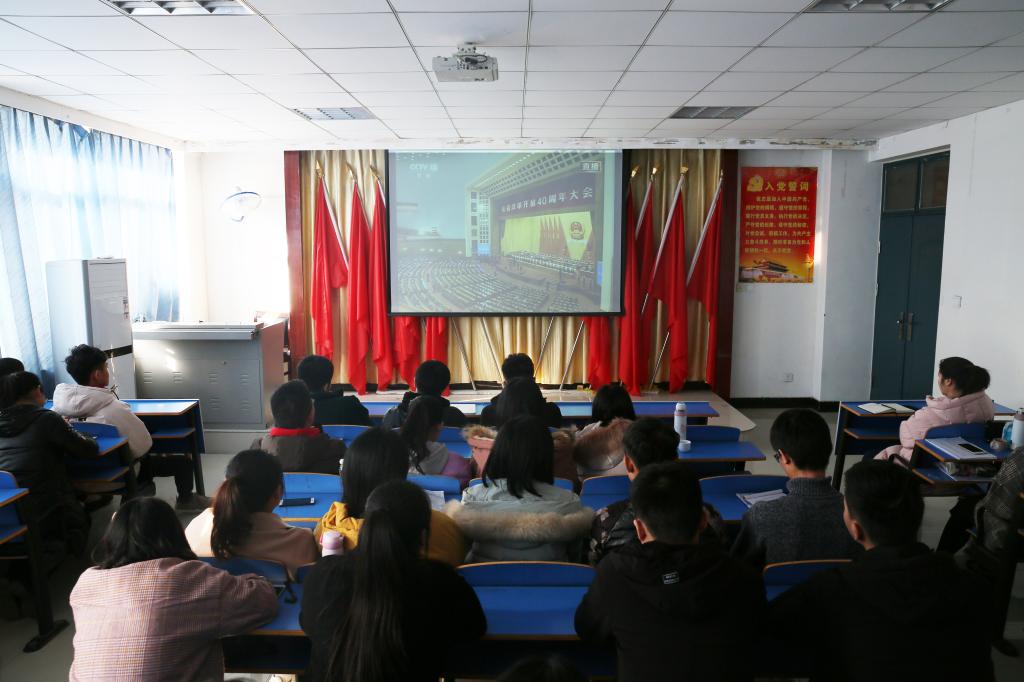 40年风雨兼程,40年沧桑岁月。12月18日上午10时,庆祝改革开放40周年大会在人民大会堂隆重举行,中共中央总书记、国家主席、中央军委主席习近平出席大会并发表重要讲话。我院党委周密部署、精心安排,组织广大师生收听收看了大会直播实况,共同感受改革开放40年来中国在经济、文化、教育等方面取得的辉煌成就。