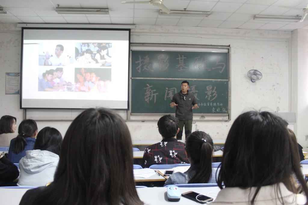 4月13日下午,东方今报首席摄影记者袁晓强主讲的新闻摄影专题讲座在12号教学楼合八教室开讲。中文系教师代表、新闻学专业全体同学、院大学生通讯员等120余人聆听了此次讲座。