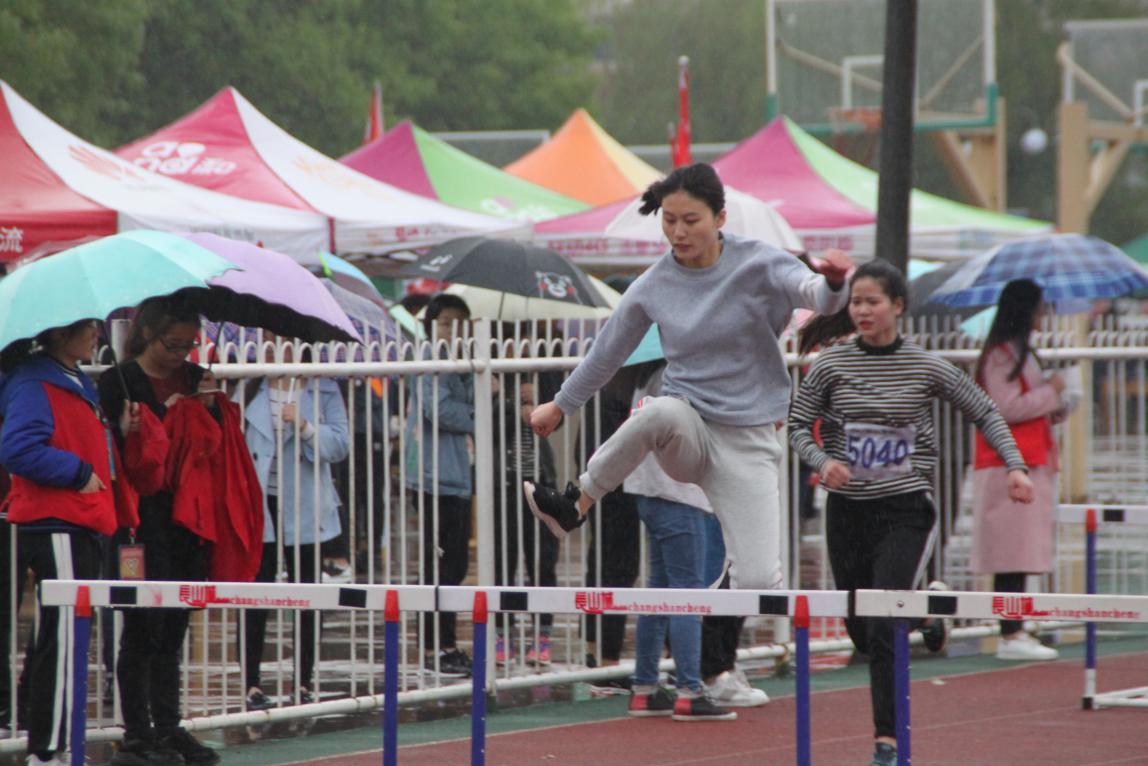 13日上午,雨点越来越密集,但同学们的热情并没有减退。参加跨栏比赛的运动员们早就在起点等待,一声枪响,他们像一头矫捷的鹿,飞跃一道道栏杆,向终点冲来。围观的人群顿时爆发出一阵掌声。
