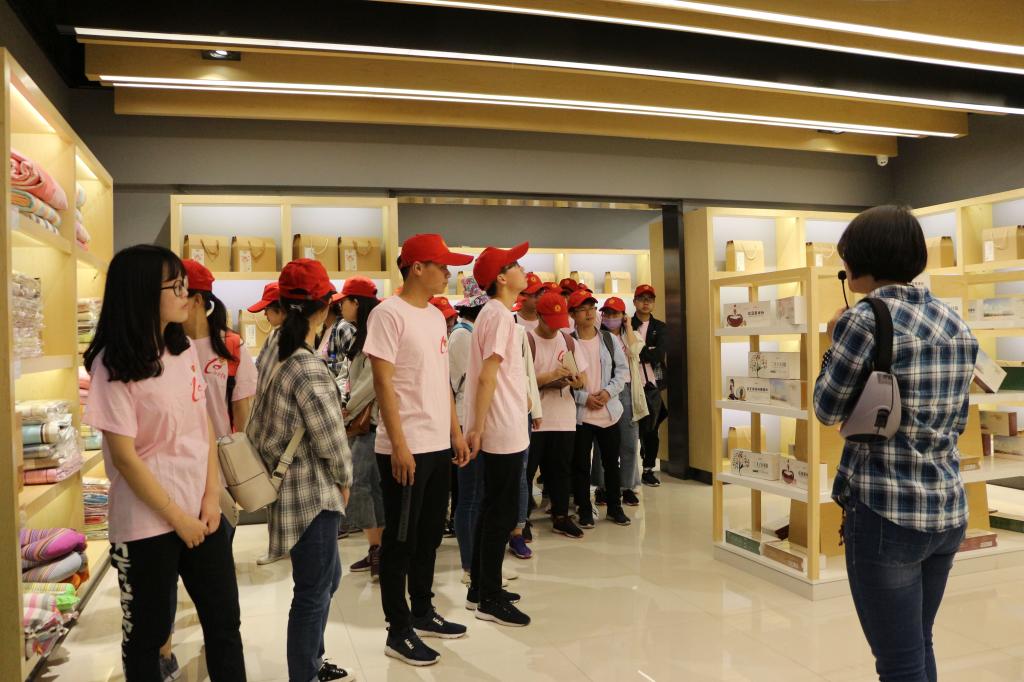 师生在跨境电商馆前合影留念 |