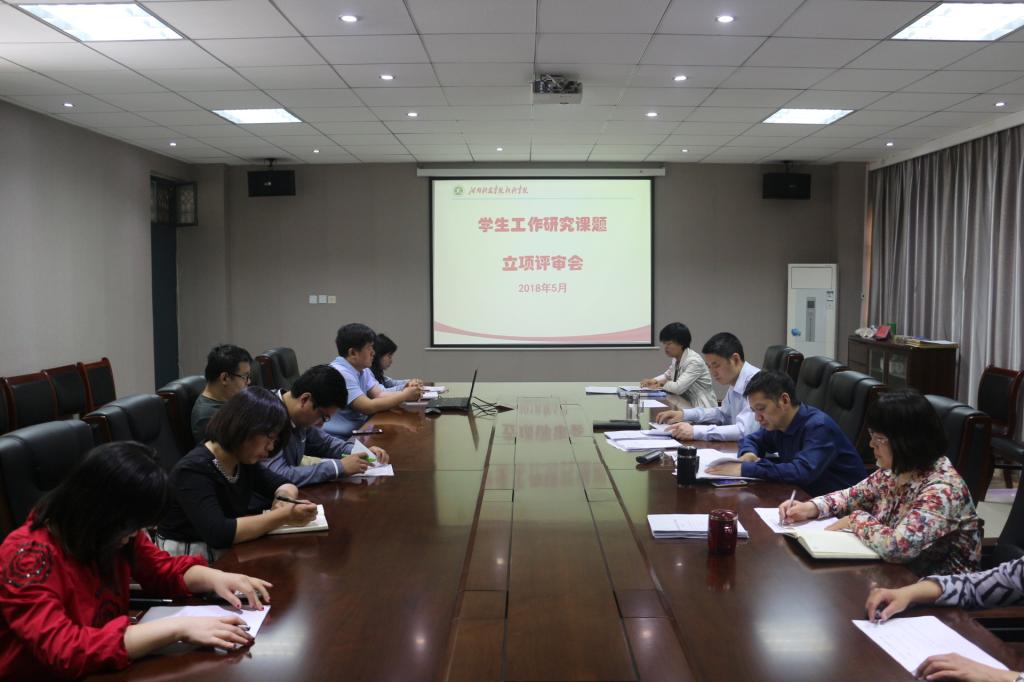 5月2日下午,我院2018年学生工作研究课题立项评审会在12号教学楼第二会议室举行。我院副院长张宝剑、姚素梅,党委副书记熊仁杰以及科研部主任王淑云、生化系主任王秀鸽、思政部马艳红、陈亚敏作为评委参加了会议。会议由学工部大学生心理健康教育与指导中心主任郭丽娟主持。