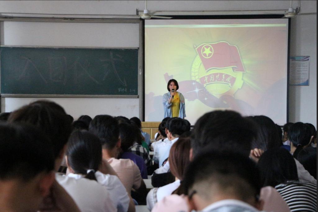 白雪莲老师对新入团的同学表示祝贺,希望各位团员铭记入团誓词,切实用一言一行践行誓词,用自己优良的学习成绩来诠释誓词,保持团的先进性,树立好团员的形象,成为严守纪律、勤奋学习、热爱学校的楷模,做一名优秀的共青团员。