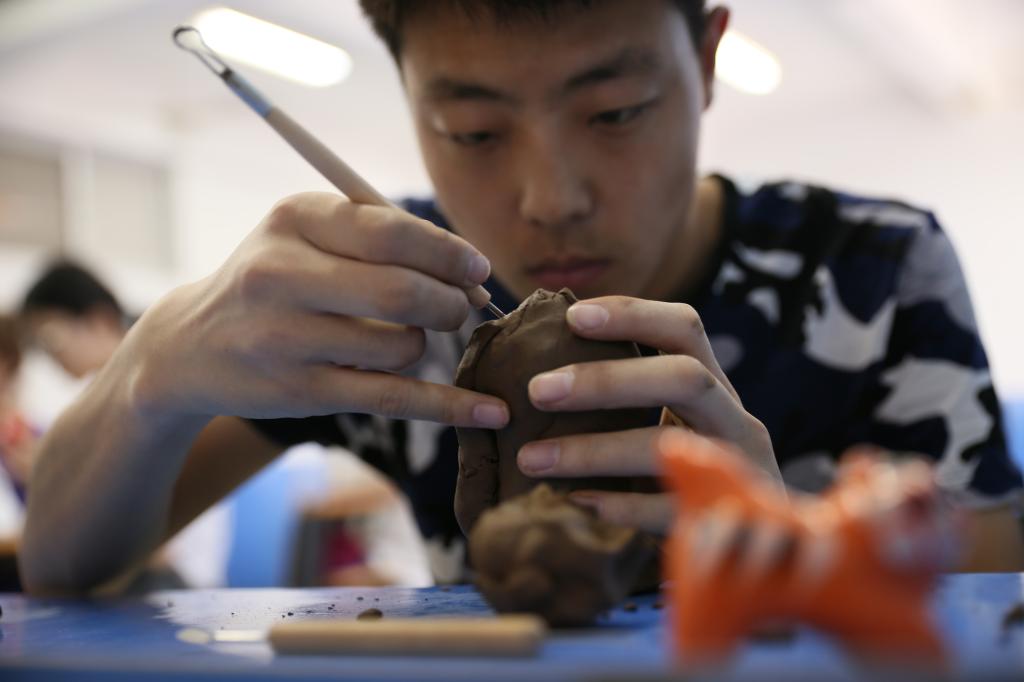 活动现场,同学们跟随艺术系张志伟老师一起学习“泥彩塑”的制作过程,揉、搓、捏、刻、绘,同学们兴趣盎然、全神贯注,通过努力认真制作出了一个个形态各异、惟妙惟肖的小动物泥塑形象。