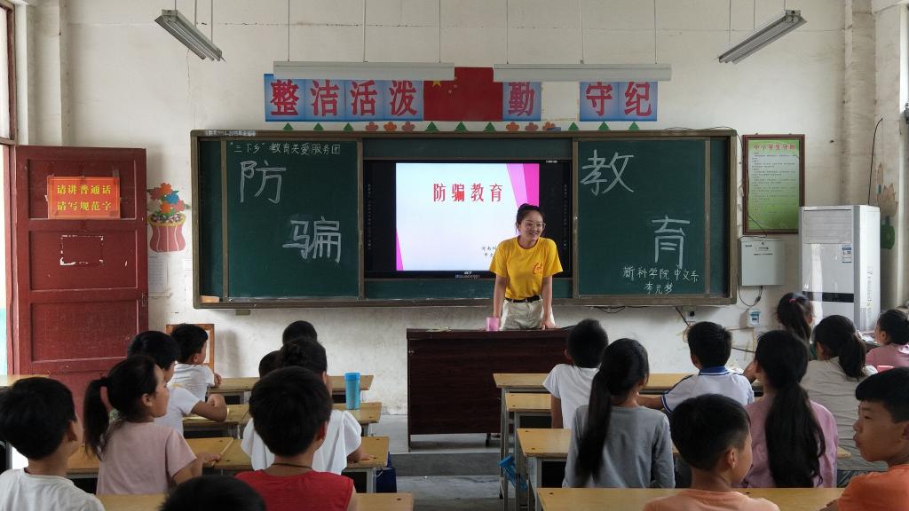 7月9日,“教育关爱社会实践团队”来到原阳县阳阿乡韩庄小学,开展了为期一周的义务支教活动。在实践小学,志愿者们向同学们讲授了防溺水、防拐、防骗等安全教育课程。他们通过图文并茂的PPT课件,以师生互动、提问讨论、情景模拟等方式对常见的拐骗招数及对策进行了生动讲解;对防溺水安全知识进行了示范解读。通过义务支教活动,拉近了志愿者们与孩子们的距离,打开他们的心扉,扩宽他们的视野,塑造了孩子们更加健全、完善的人格,引导他们树立正确的人生观、价值观。