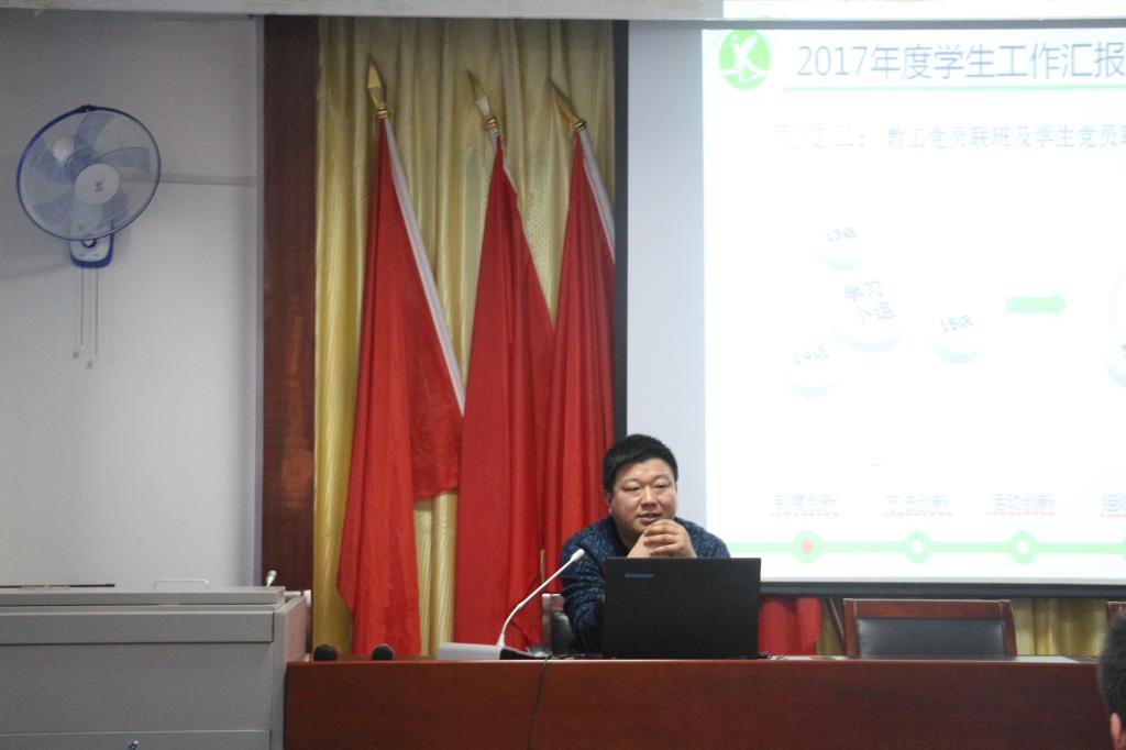 12月25日,我院在12号教学楼601党员活动室举行2017年度学生工作考核暨工作交流会。我院学工部、团委等相关职能部门负责人,各系主任及全体辅导员参加了会议。