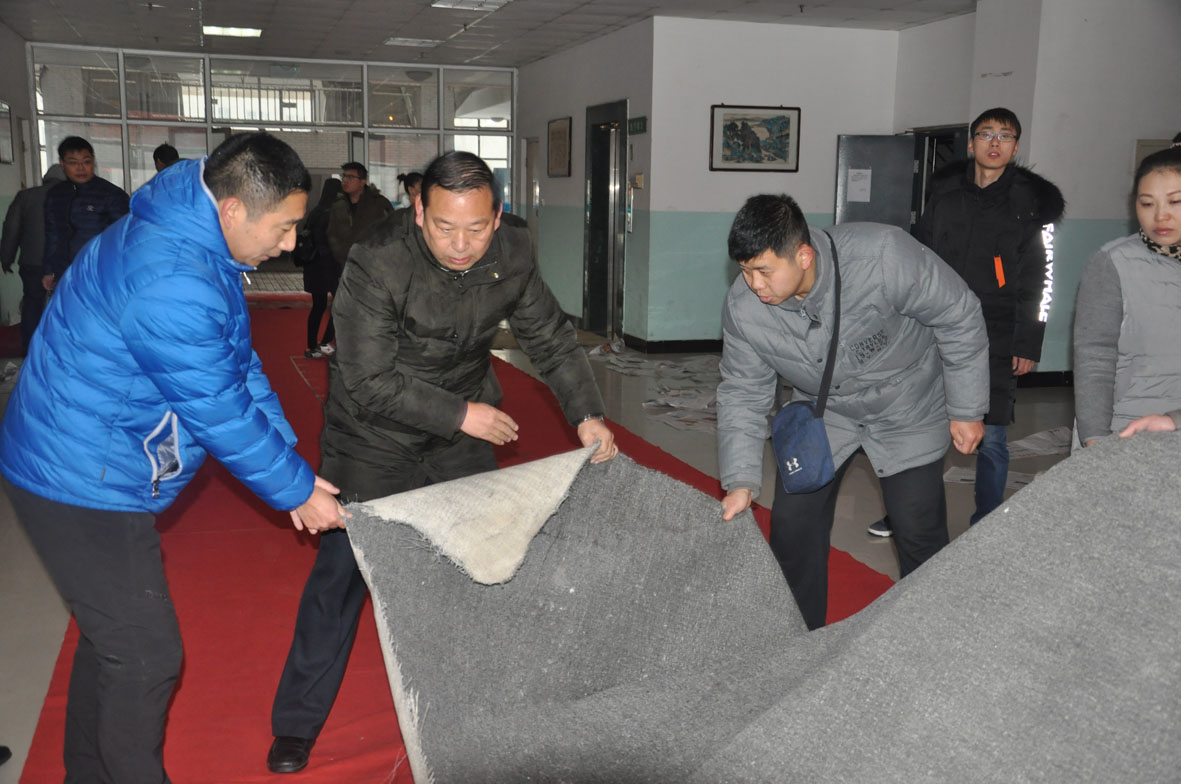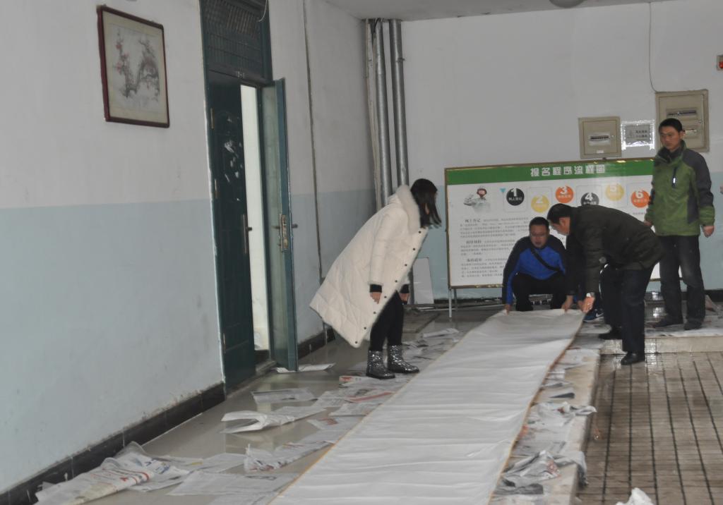 在院党委副书记牛玉、熊仁杰,副院长张宝剑的带领下,教师们带着铁锹、扫帚等工具,展开了扫雪清路除障工作。教师们冒着飕飕袭来的寒风,不顾冰雪湿透衣鞋,争先恐后、相互配合、齐心协力,将我院楼宇附近的主要通道清扫干净。在12号楼一楼大厅,由于人流较多,为防止踏雪浸湿的鞋底打滑而摔倒,教师们充分利用废旧地毯和报纸,将其铺在地面上,确保了大家的出行安全。