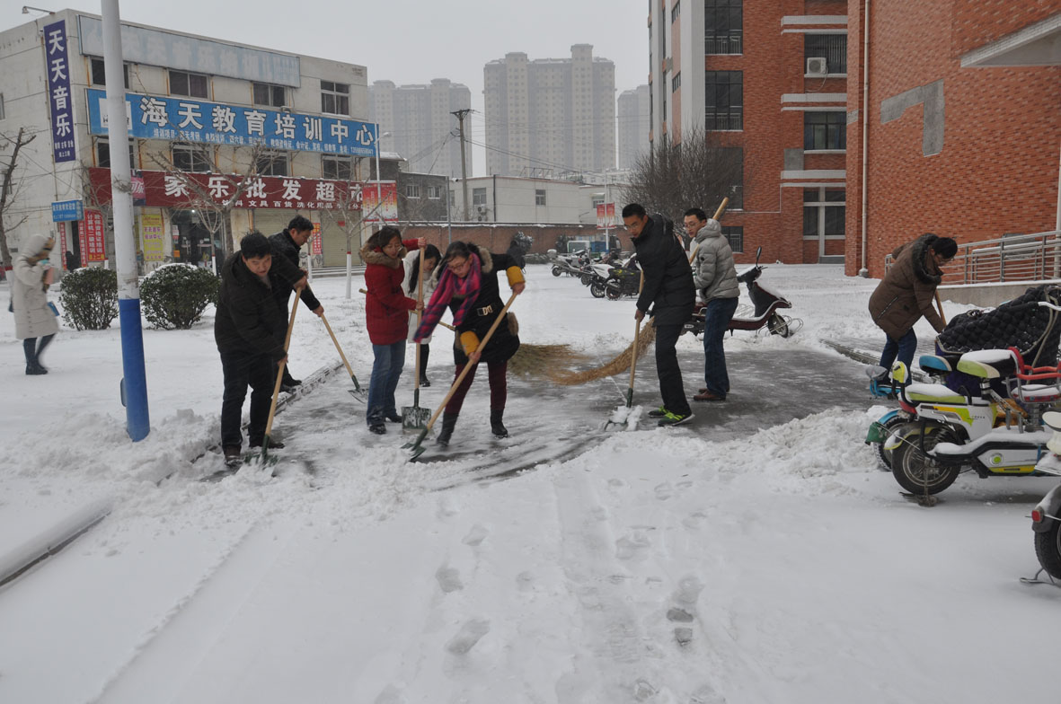 此外,我院各系也组织学生开展了集中清扫活动,学工部、团委等部门通过qq群、微信群等渠道形式,及时向在校师生发布寒冷天气注意事项,一系列贴心的举动温暖了所有师生的心。