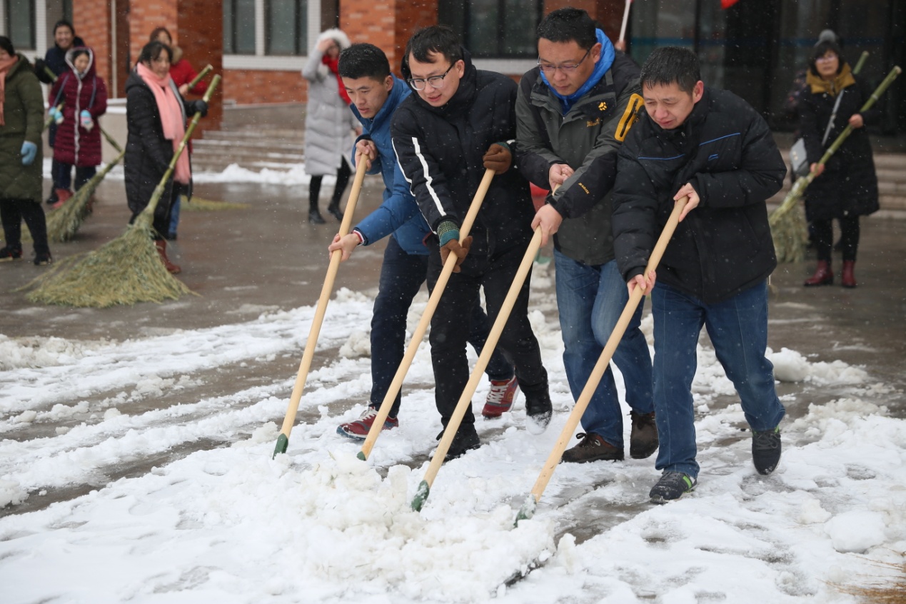 新年的第一场雪如约而至,整个校园银装素裹,分外妖娆。在感受美景带来欢乐的同时,昼夜的积雪也为师生的出行带来了诸多不便。为保障大家出行安全,1月4日,我院教职工早早来到学校,自发组织开展了扫雪除冰活动,保障了道路畅通,确保了出行安全,用新科精神温暖了整个校园。