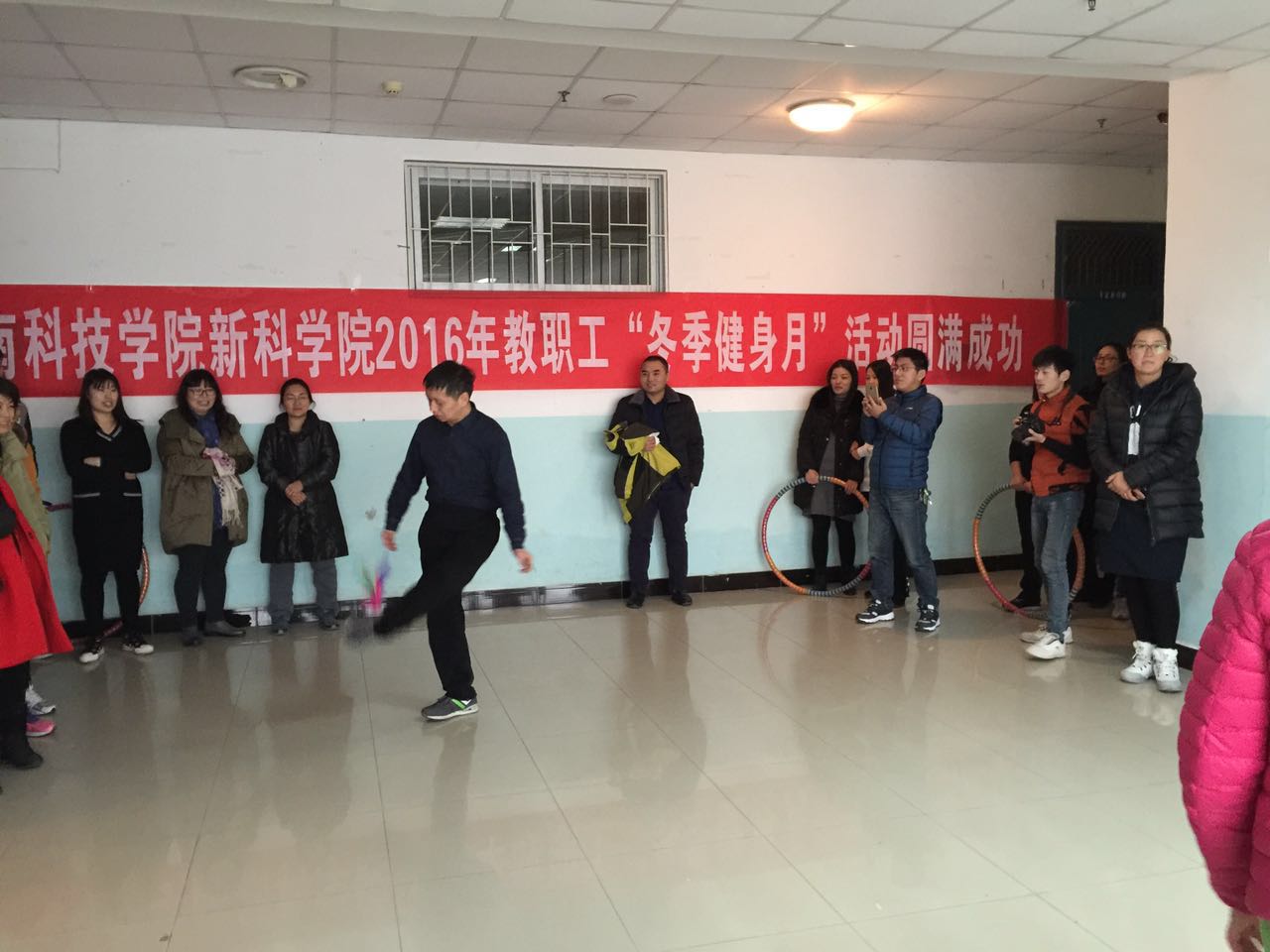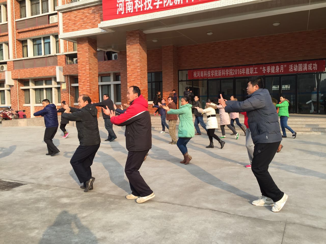 为落实全民健身计划,增强教职工身心健康,丰富教职工业余生活,促进和谐校园建设,按照《河南科技学院新科学院2016年冬季健身月系列活动的实施办法》安排,11月14日至30日,院工会举办了2016年教职工“冬季健身月”系列活动。此次活动的主题是“每天锻炼一小时,健康生活一辈子”。