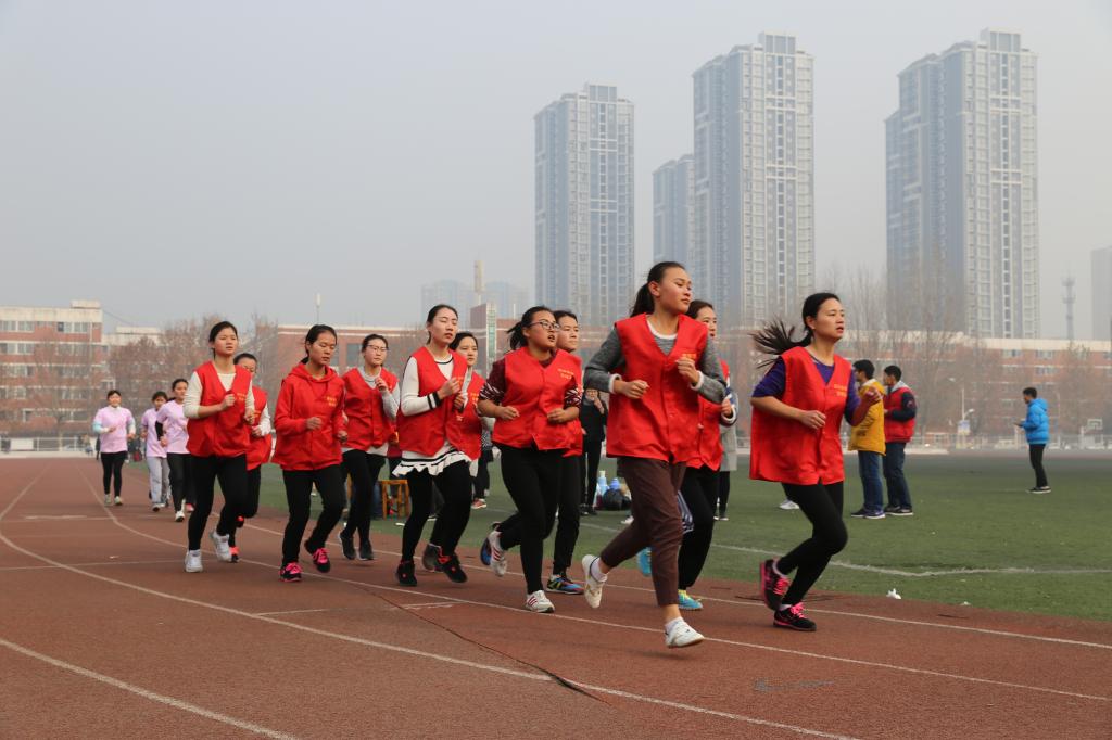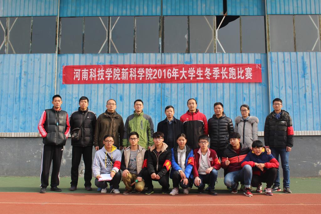 为全面贯彻国家教育方针,认真践行《中共中央国务院关于加强青少年体育增强青少年体质的意见》和教育部《关于开展第八届全国亿万学生阳光体育冬季长跑活动的通知》文件精神,培养学生顽强拼搏、勇于进取、不怕困难的意志品质,有效提高学生体质,活跃校园体育文化生活,掀起我院大学生冬季长跑锻炼热潮,12月3日上午,我院在河南科技学院东、西操场举办了以“每天锻炼一小时,健康成长伴你我”为主题的2016年大学生冬季长跑比赛。来自我院13个代表队,181余名同学参加了此次长跑比赛。