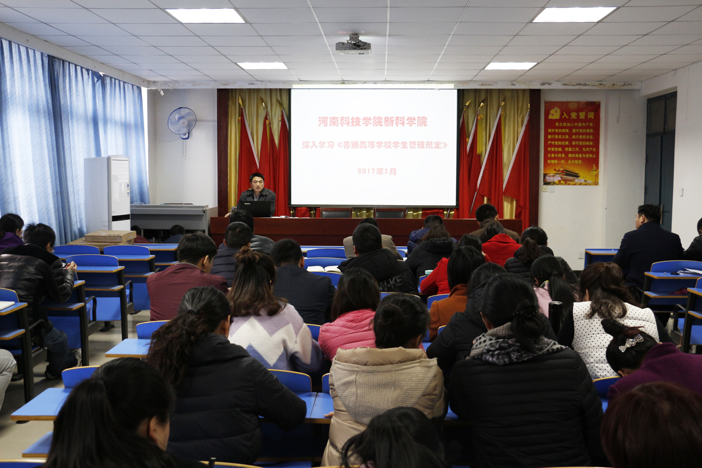 为使我院学生工作人员尽早了解《普通高等学校学生管理规定》(以下简称新版《规定》),进一步推进学生管理工作制度化、规范化建设,3月13日下午,学院召开专题学习会,认真学习新版《规定》。院党委副书记熊仁杰,相关职能部门人员以及全体辅导员参加了学习。