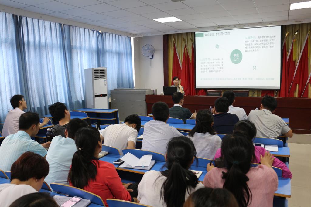 为加大辅导员培训力度,完善素质提升平台,营造互相交流和学习的良好氛围,结合学院正在开展的“读书年”和弘扬中华传统文化教育活动,学工部组织全体辅导员,每单周进行一期辅导员工作沙龙。5月22日,河南科技学院信息工程学院团委书记栗宁作为我院辅导员工作沙龙受邀嘉宾,在12号教学楼601教室作了题为“凝聚责任、点亮青春”的专题报告,我院副院长张宝剑、党委副书记熊仁杰、相关职能部门人员及全体辅导员参加了报告会。