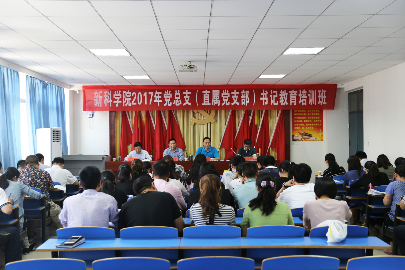 为进一步提升党总支书记和支部书记的理论素养和工作能力,增强基层党组织书记的创造力、凝聚力和战斗力,院党委举办了2017年党总支(直属党支部)书记培训班。5月12日,培训班开班仪式在12号教学楼601党员活动室举行。河南科技学院党委组织部部长王三虎受邀出席并作专题报告,院党委书记张忠迪,副院长张传来、张宝剑,学院各党总支书记、支部书记参加了开班仪式。开班仪式由张传来主持。