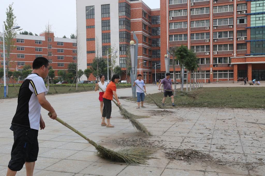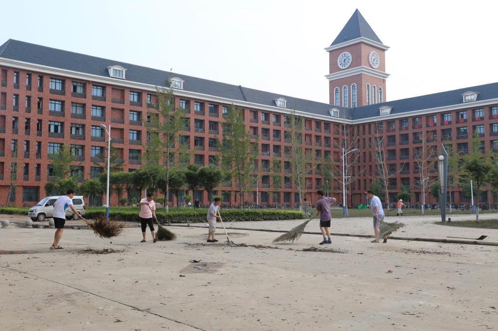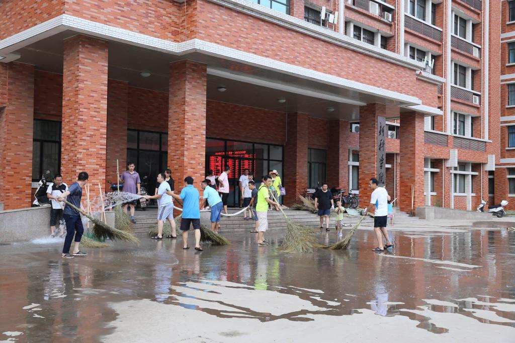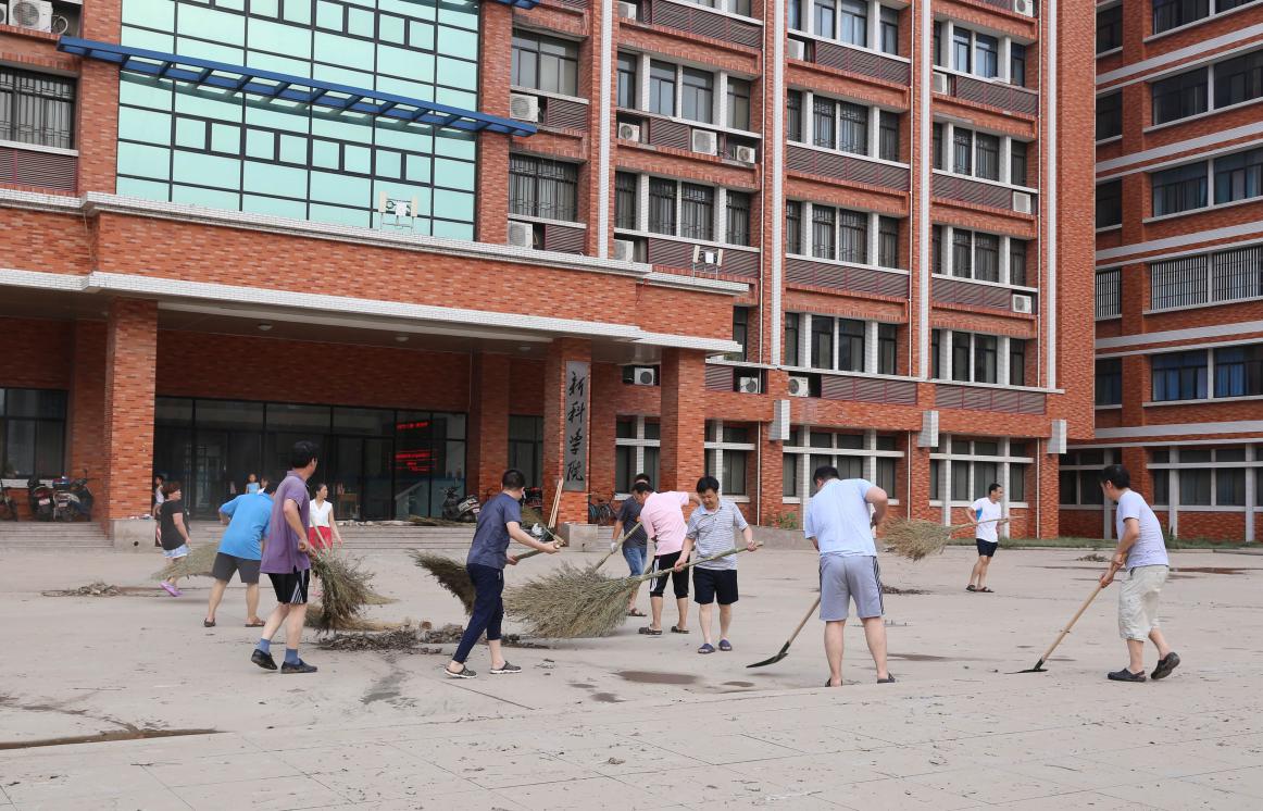 11日下午,校园内积水基本退去,在刘鸣韬院长、张忠迪书记的带领下,院抗洪救灾和灾后重建工作领导小组同志对12号教学楼楼前广场区域进行了清扫。