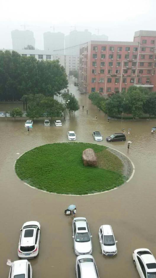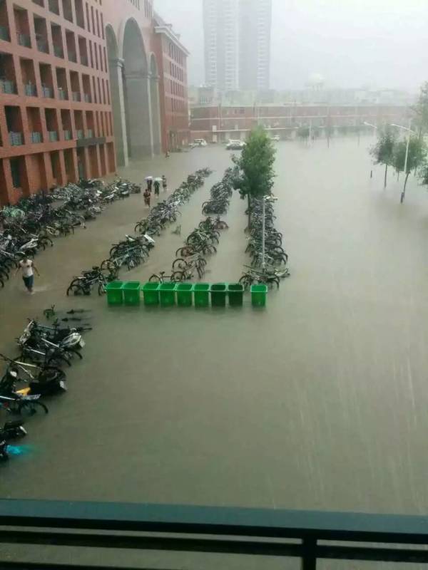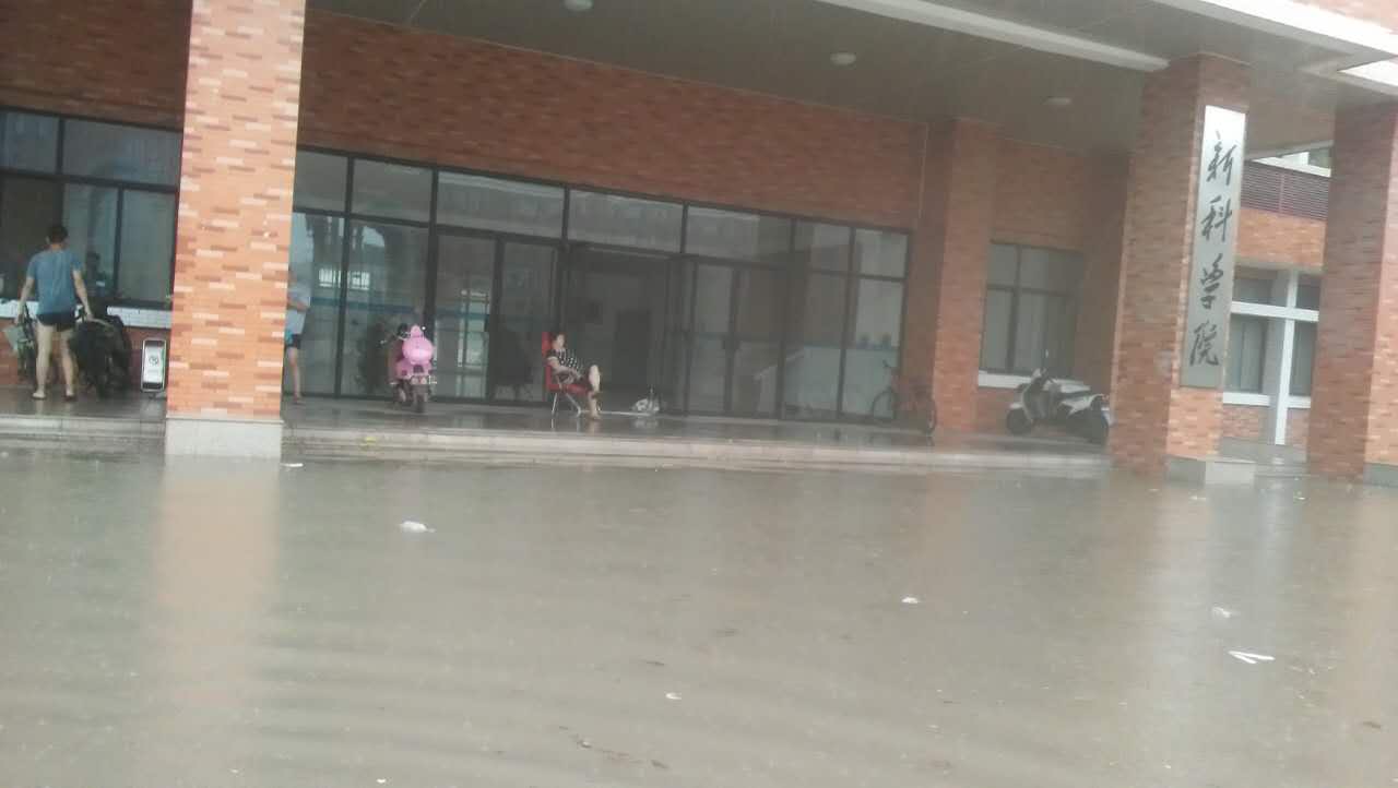 7月9日凌晨到夜里,新乡市多地遭遇了大暴雨或特大暴雨的袭击,最大降水量达450.2毫米,日降水量不仅突破了我市有气象记录以来的最大值,还突破了我市汛期常年平均总降水量!降雨后,积水主要集中在向阳路以南,新中大道以东,新延路以北,107国道以西,河南科技学院在正中。我校最深水达到90㎝,基本到腰部。