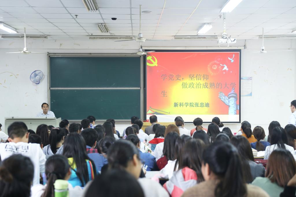 中午12点30分,我院党委书记张忠迪在合一教室以《学党史 坚信仰 做政治成熟的大学生》为题,从党史学习的重要性、中国共产党的发展历程、学习党史的体会三个方面内容进行了详细阐述,要求同学们注重对党史的学习,树立共产主义理想信念,坚定崇高的精神信仰,做一名政治成熟的大学生。熊仁杰副书记在合三教室以《坚定理想 当代大学生与中国共产党》为题,围绕当代大学生的历史使命、中国共产党对青年工作的高度重视、青年大学生应积极争取加入中国共产党三方面内容展开论述,希望同学们认清形势、明确使命,积极投身到党和国家各项事业中去。其他培训教师也分别围绕党的性质、党的指导思想、社会主义核心价值观等方面展开论述。
