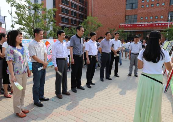 此次活动以“与心灵相约,与健康同行”为主题,包括现场签名、心理健康宣传页的发放、最美瞬间笑脸征集与展示、展板展示与讲解四部分。本次活动展板为我院13个系的同学们自己创意绘制,展板配有详细的寓意解释,得到了广大师生的关注。下午四点,我院院长刘鸣韬,党委书记张忠迪,副书记牛玉,副院长张传来、张宝剑、姚素梅,副书记熊仁杰,部分职能部门负责人,各系系主任等在心理咨询中心老师高普梅的引导下参观了心理健康知识宣传设计展。院领导一行听取了学生的讲解,对本次活动给予了高度评价,同时强调了心理健康教育工作的重要性,勉励大家齐心协力,为我院人才培养目标的实现奠定坚实的基础。