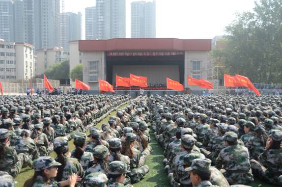 河南科技学院2015级新生军训汇报表演暨总结表彰大会现场
