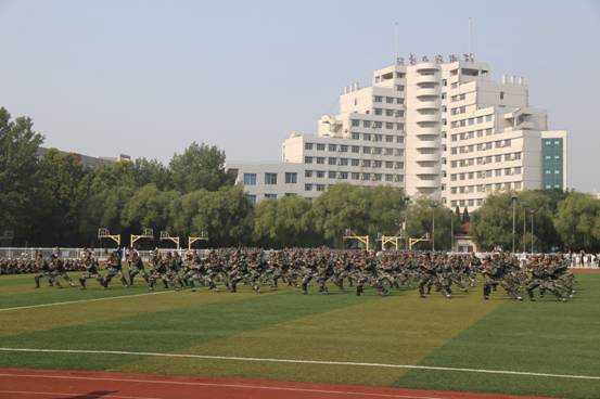 大会在庄严的国歌声中拉开帷幕。随后,17个受阅连队依次进行了分列式表演。由我院700余名新生组成的6个方队最后出场,在激昂的《分列式进行曲》中,他们迈着整齐划一、矫健铿锵的步伐,依次通过主席台,接受校领导和部队首长的检阅。他们高昂的士气、饱满的激情、嘹亮的口号展现了新科学子勇往直前、奋发有为的青春风采。阅兵分列式结束后,由我院400余名新生组成的4个表演方队在教官的指挥下,先后进行了大合唱、军体拳、队列基础动作、刺杀操等四个项目的汇报演出,同学们高亢的歌声、熟练的动作、精彩的表演,不时博得在场人员的阵阵掌声。